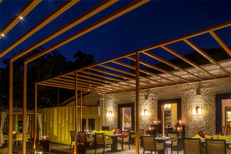 Exotic open-air restaurant with terrace tables serving European dishes matched with fine wines.